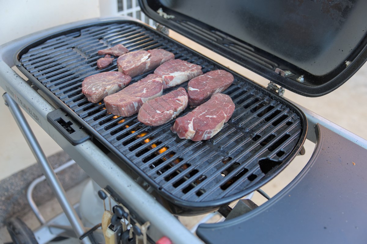 Place the steaks on the grill.