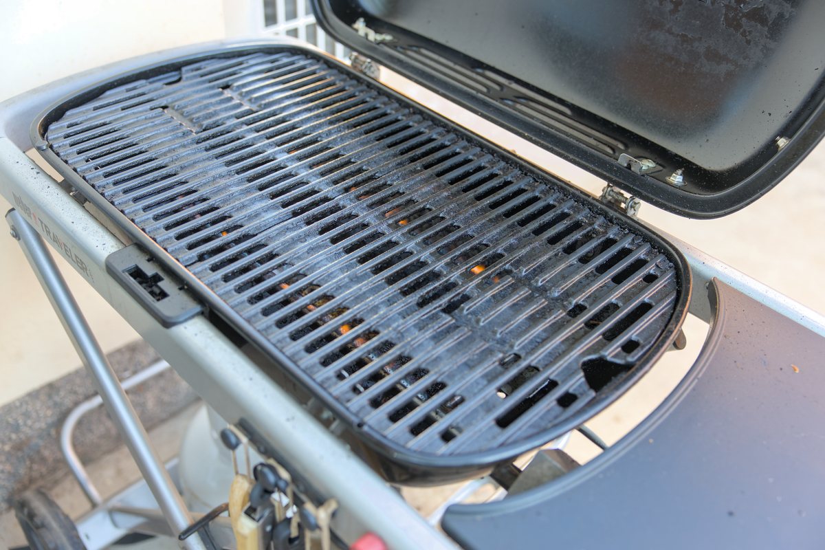 Start the barbecue and allow it to reach 200°C. Use a metal spatula and/or wire brush to remove any large residue. Wipe the grill with paper towel, then apply oil either via oil-saturated paper towel or spray. Close the lid and allow the barbecue to reach 200°C again.