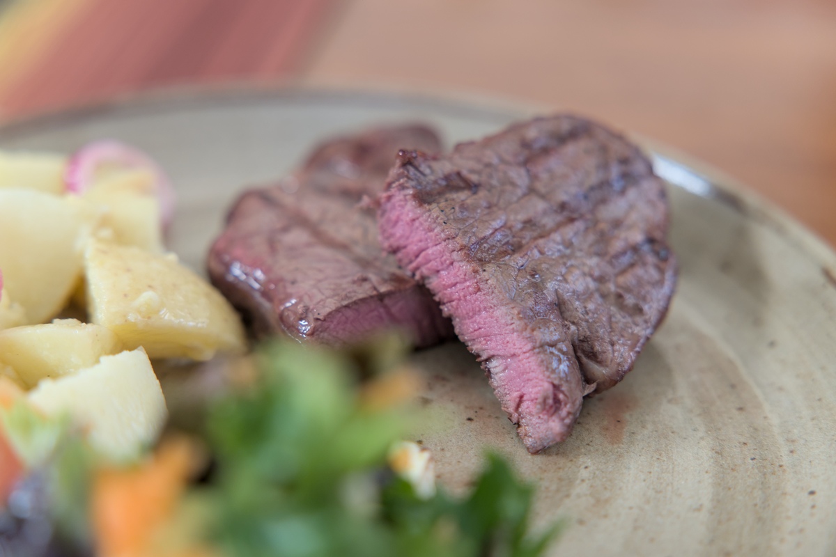 If not already cut, cut the meat into steaks of equal thickness (approximately 40-50mm thick). A sharp knife helps produce clean, consistent cuts.