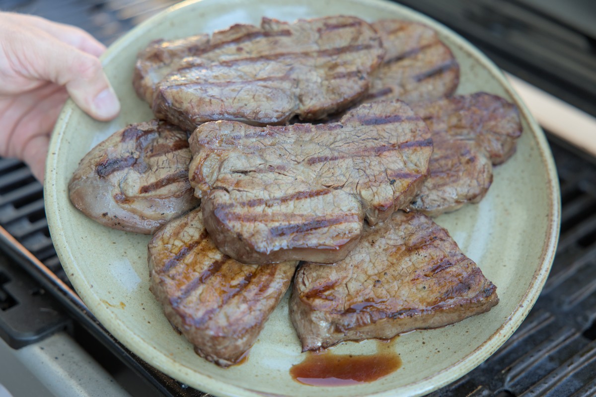 When complete, the steaks should have a nice brown colour with some sear marks from the grill.