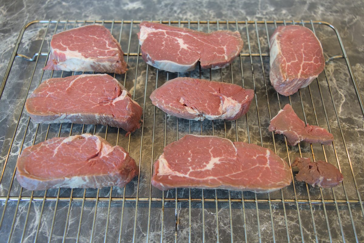Place the steaks on a rack that allows maximal air flow around the steaks.