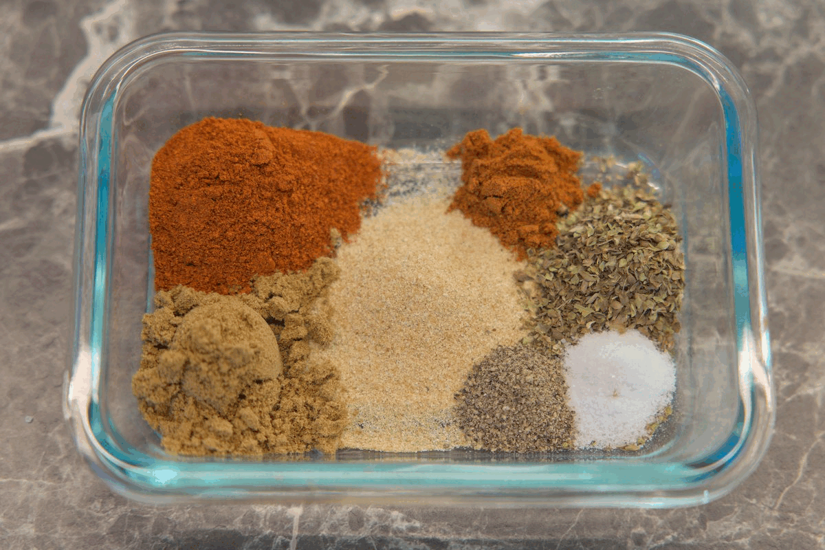 Measure and combine spices.